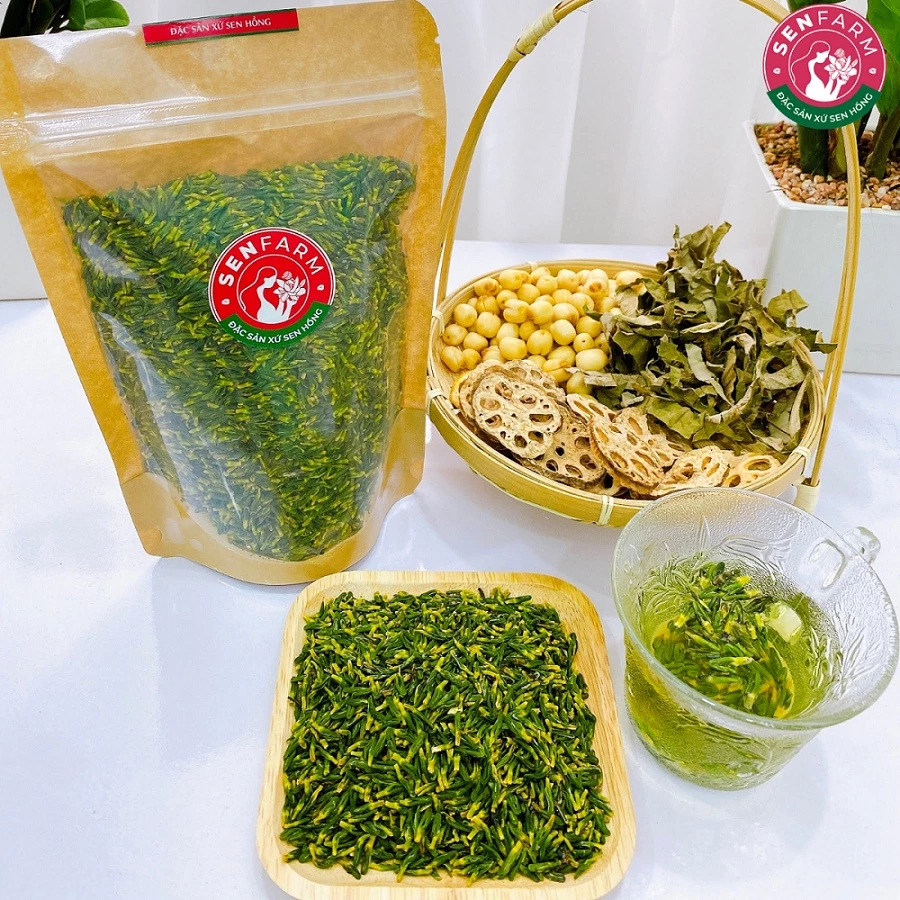 • Tâm sen khô (tim sen) Đồng Tháp loại 1 – 100g: Tâm sen tươi được phơi sấy kỹ, giữ nguyên màu xanh và hương thơm tự nhiên, dùng để pha trà hoặc kết hợp trong các món thanh lọc cơ thể.