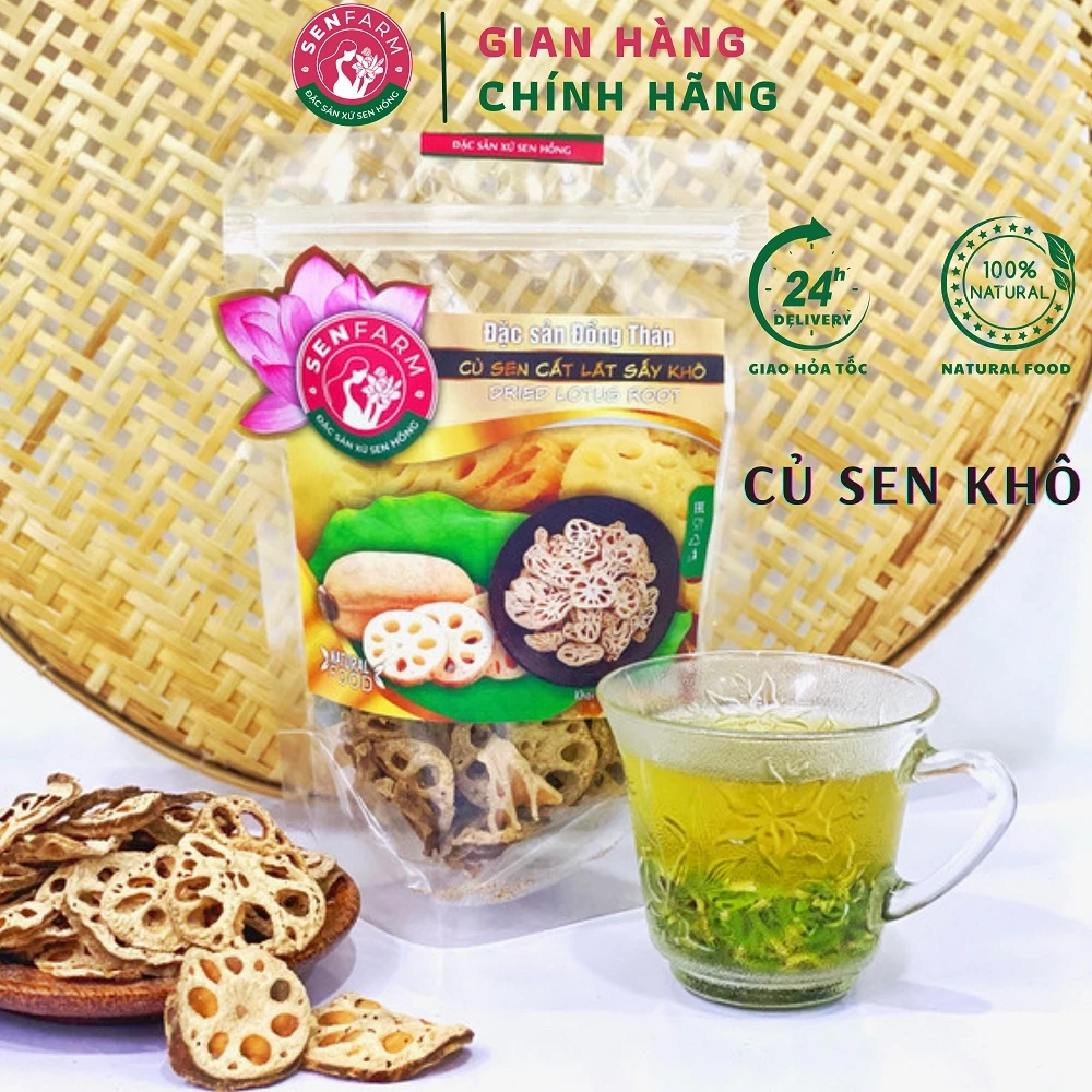 Củ Sen Khô Đồng Tháp Senfarm – lát sen khô tự nhiên 100% từ Đồng Tháp, thanh mát, bùi thơm, tốt cho sức khỏe và dễ chế biến trong nhiều món ăn bổ dưỡng.