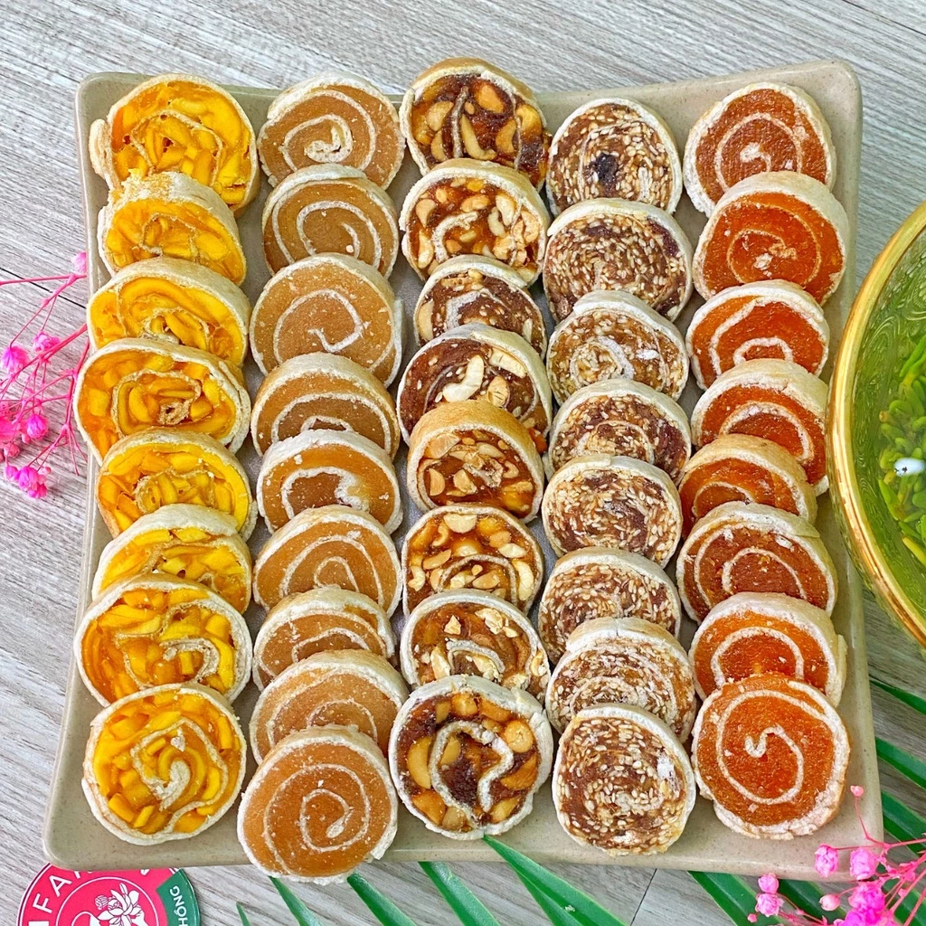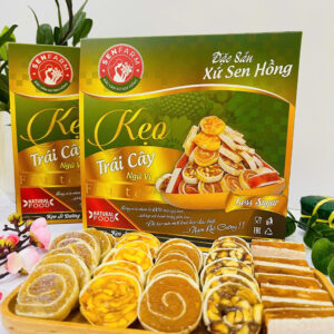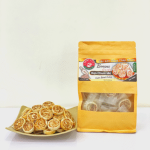 Kẹo Chuối Hạt Điều Cuộn Bánh Tráng Senfarm có màu nâu óng tự nhiên, dẻo mềm, quyện hương chuối chín và gừng cay nhẹ. Khi cắn vào, cảm nhận ngay độ giòn của hạt điều cùng vị béo ngậy của cốt dừa và mè trắng. Lớp bánh tráng phồng bên ngoài giúp kẹo không dính tay, tạo cảm giác giòn tan thú vị khi thưởng thức. Đây là món quà quê tinh tế, vừa ngon miệng vừa mang đậm nét văn hóa ẩm thực Việt.